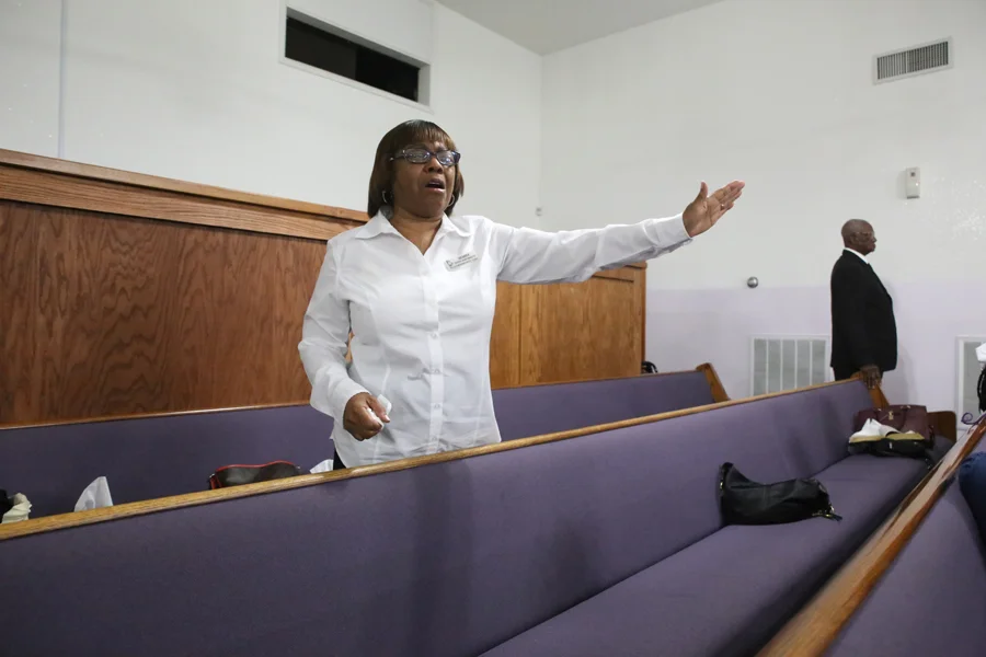 True Love's Pastor Robert Bell; scenes from the Sunday service after the shooting, including guest speaker Pastor Carlton Lynch, head pastor of Pilgrim Rest Baptist Church, Benton Harbor, Michigan