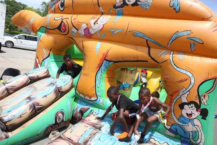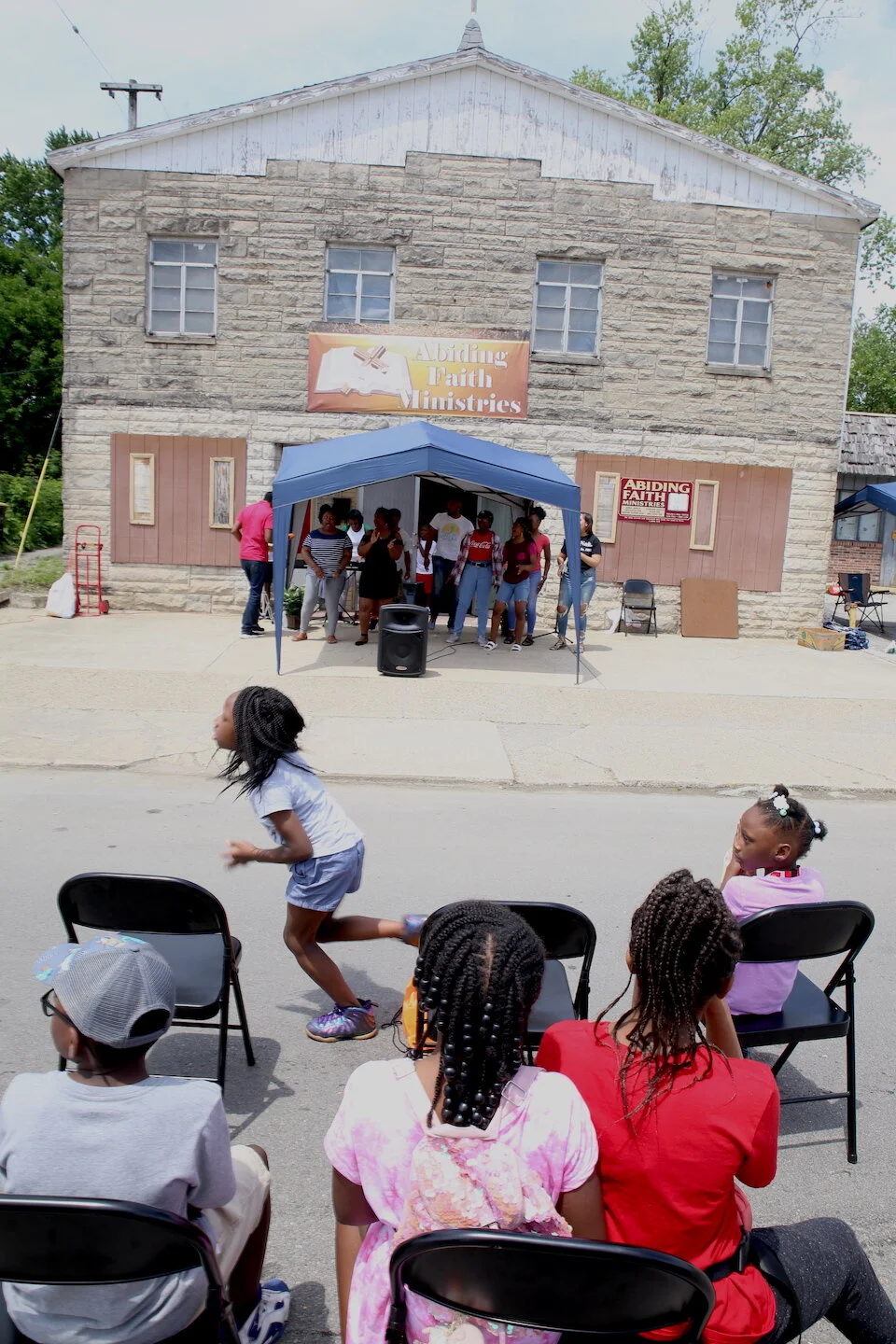 For the fourth year, though, Abiding Faith held their Bless This Block community event, from Noon to 4 p.m., shutting down the street in front of it for games, moonwalk-playing, praise dancing, singing and vendor-perusing. It’s always a good response, the pastor said, and “a lot of it is discovery” when it comes to the attendees who swung through after running across it. Shutting down the street and making a joyful noise (with singing and laughter) is to build community pride, according to Pastor Riley. “We are here to galvanize community against the violence,” he said into the mic, so the block and beyond could hear.